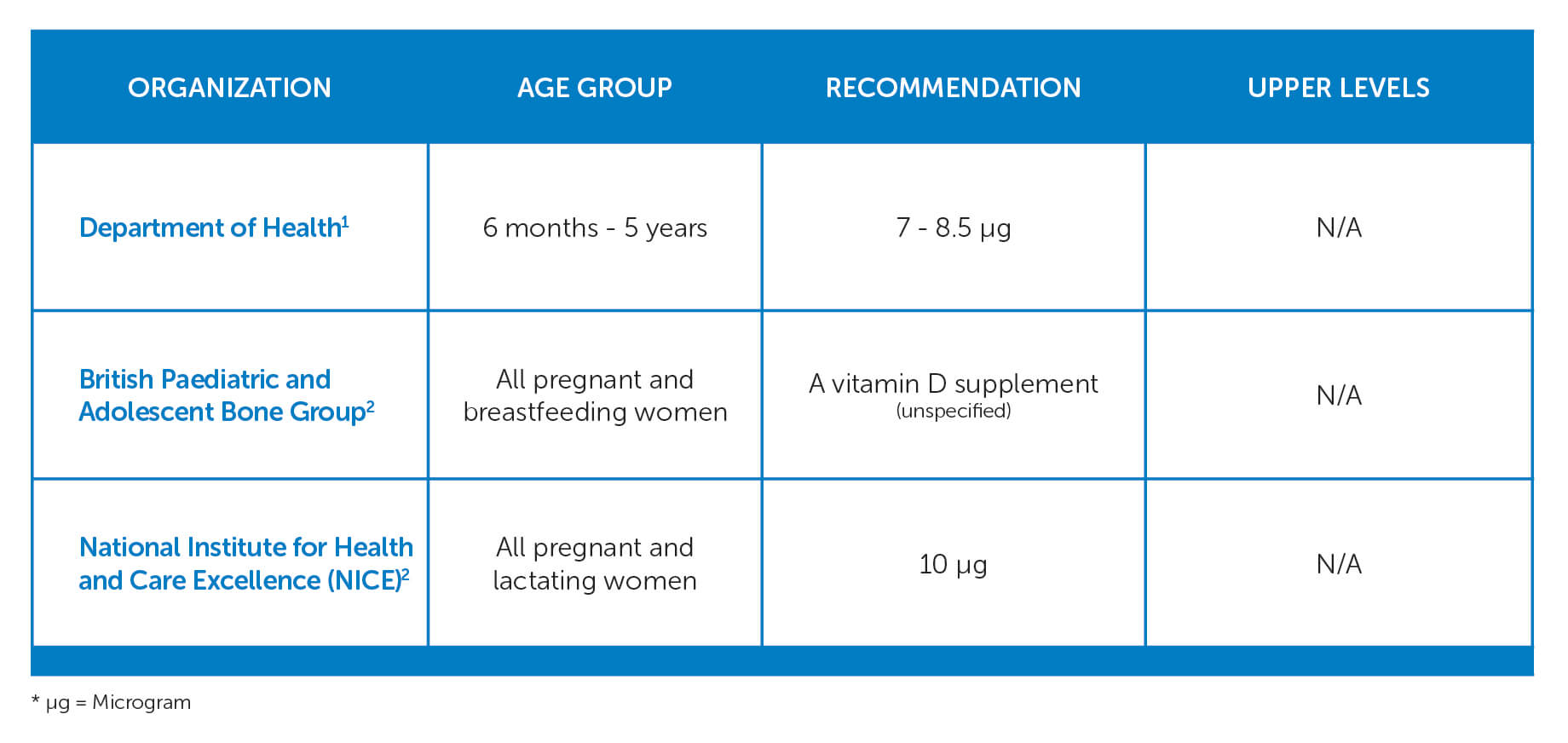 - Vitamin D: Increasing Supplements use among at-risk groups. NICE. https://www.nice.org.uk/guidance/ph56
